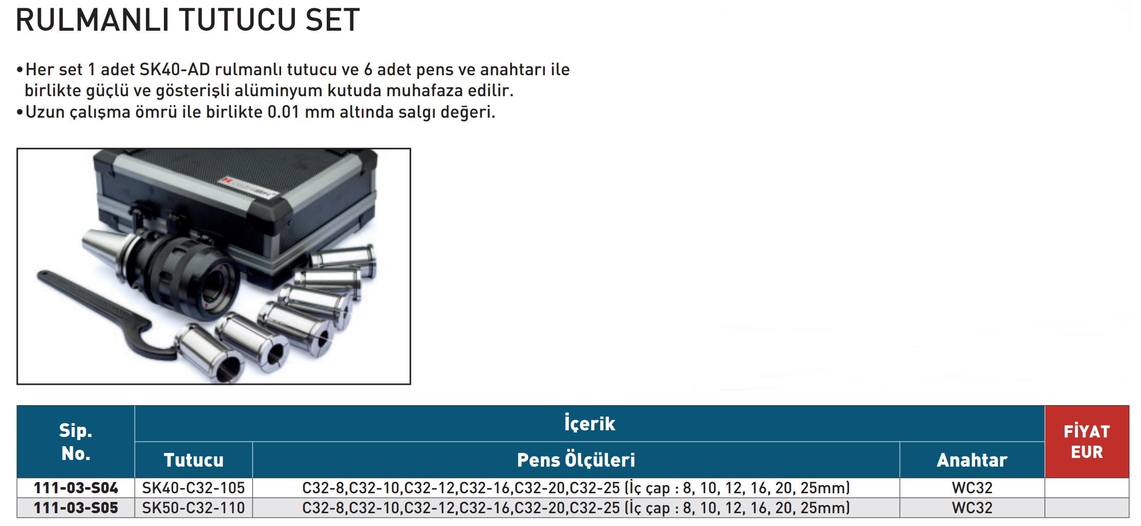 SK50-C32-110 Harlingen Sk DIN69871 Rulmanlı Tutucu Set