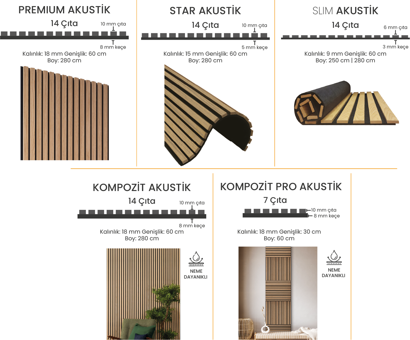 - Slim Akustik Duvar Paneli, ultra ince yapısı, dayanıklı FF kaplaması ve rulo yapılabilir esnek tasarımı ile öne çıkar.